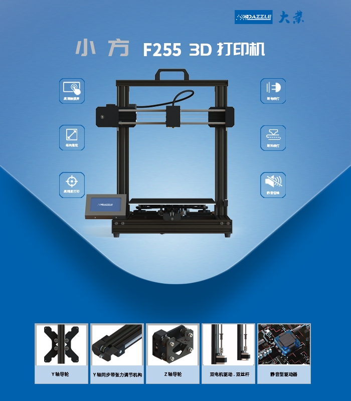小方F255 3d打印機(jī)是一款采用全金屬設(shè)計(jì)的一款經(jīng)典大氣的桌面級(jí)FDM 3d打印機(jī),設(shè)備具備斷電續(xù)打、斷料續(xù)打、全彩智能觸摸的一款高精度3d打印機(jī),設(shè)備成型尺寸25X25X25厘米,可打印pla/tpu/petg/ABS/碳纖維等多種材料,行業(yè)應(yīng)用廣泛!