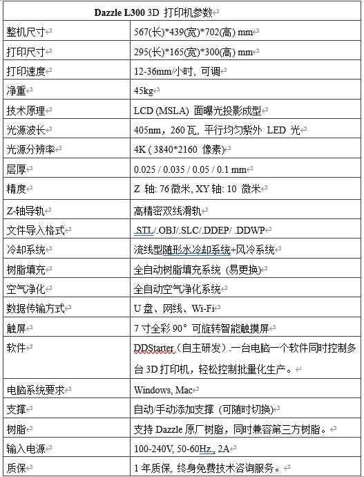 小方L300 3D打印機是一款利用光固化樹脂成型技術的桌面級3D打印機,采用的是“Micro – LCD 打印原理”成型技術,設備外形時尚,機身內部采用了耐腐耐磨的航空鋁型材制作質感十足!設備成型空間大,成型尺寸可達293*165*300mm,可滿足行業內任何需求!該設備配備了4K屏,搭配135顆品牌燈珠的平行光源讓設備成型質量得以保障,設備獨有的冷卻系統可以有效降低LED光源的發熱問題,讓設備永遠工作在35度以下,提升光源壽命,穩定性;整個設備打印也更加穩定!設備操作簡便,90度自由旋轉觸摸屏操控可實現無需連接電腦直接操作;兼容多種數據傳輸方式,實現無工作盲區作業;綜合來講這是一款打印精度高、成型質量上佳、打印速度快、成型空間大,性價比極高的一款桌面級3D打印機,可成熟應用于教育、齒科、工業設計、動漫文藝等對成型精度要求較高的行業領域。